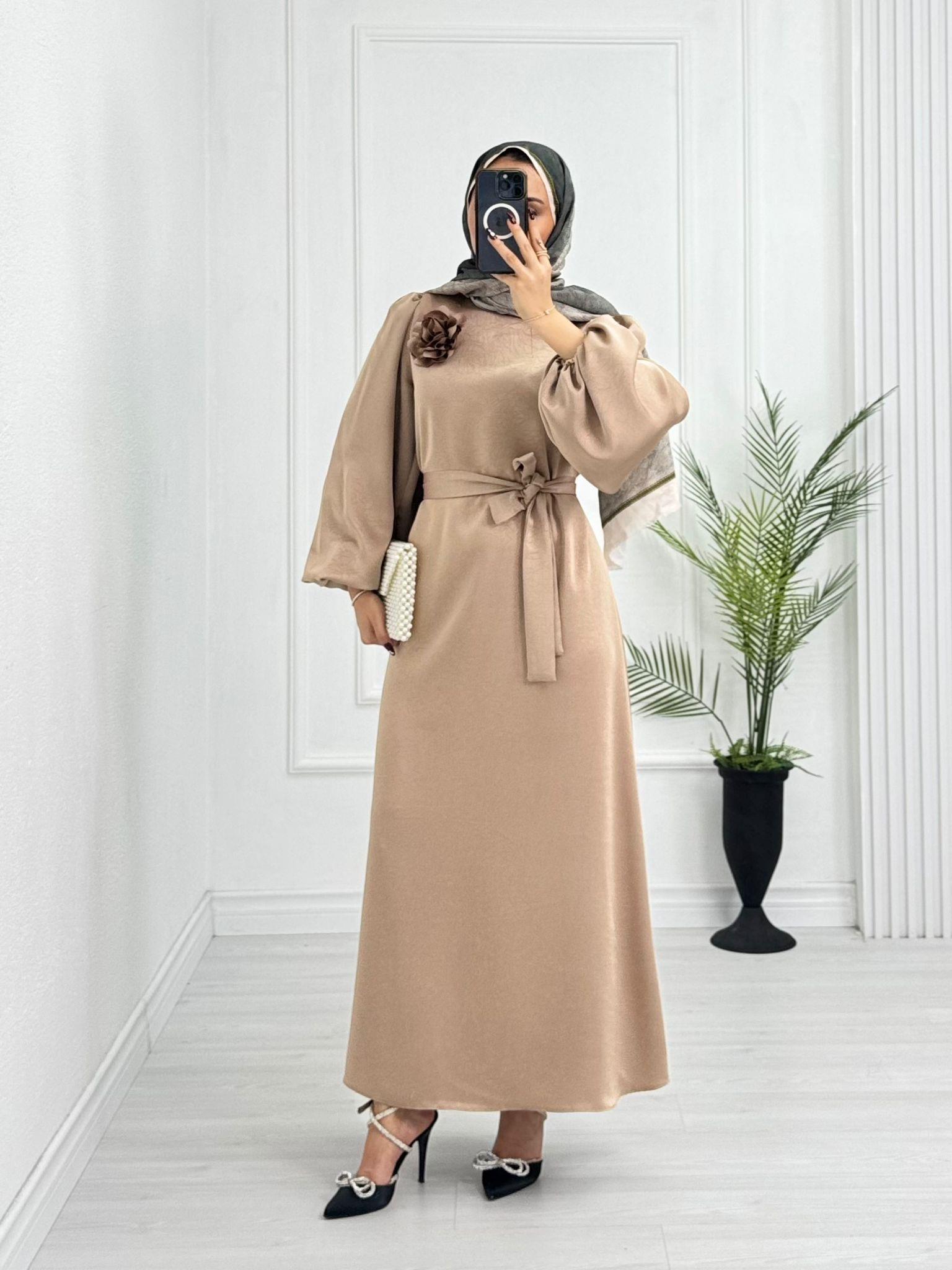 ✓ %100 ithal saten ile lüks kalite ✓ Seyyar gül detaylar ile eşsiz tasarım ✓ Seyyar kemer ile istediğiniz bel ölçüsü ✓ 135 cm boy ile ince ve uzun siluet ✓ Normal kalıp - her vücut tipine uygun ✓ Lastikli kol uçları ile zarif detay ✓ Romantik ve zarif tasarım
