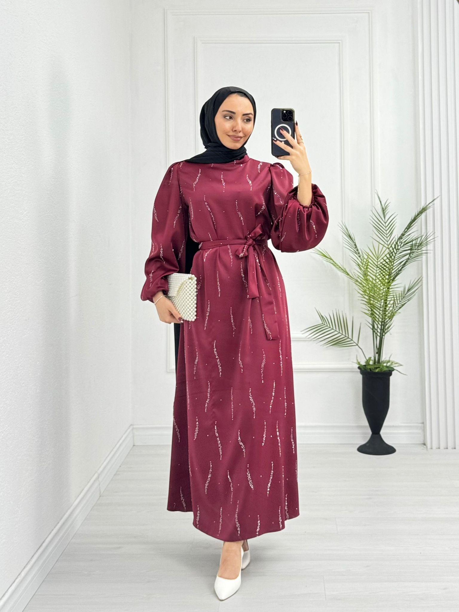 ✓ İthal saten kumaş ile premium kalite ✓ Taş detaylar ile göz alıcı ışıltı ✓ Seyyar kemer ile istediğiniz bel ölçüsü ✓ 135 cm boy ile zarif ve ince görünüm ✓ Normal kalıp - her vücut tipine uyumlu ✓ Lastikli kol uçları ile şık detay