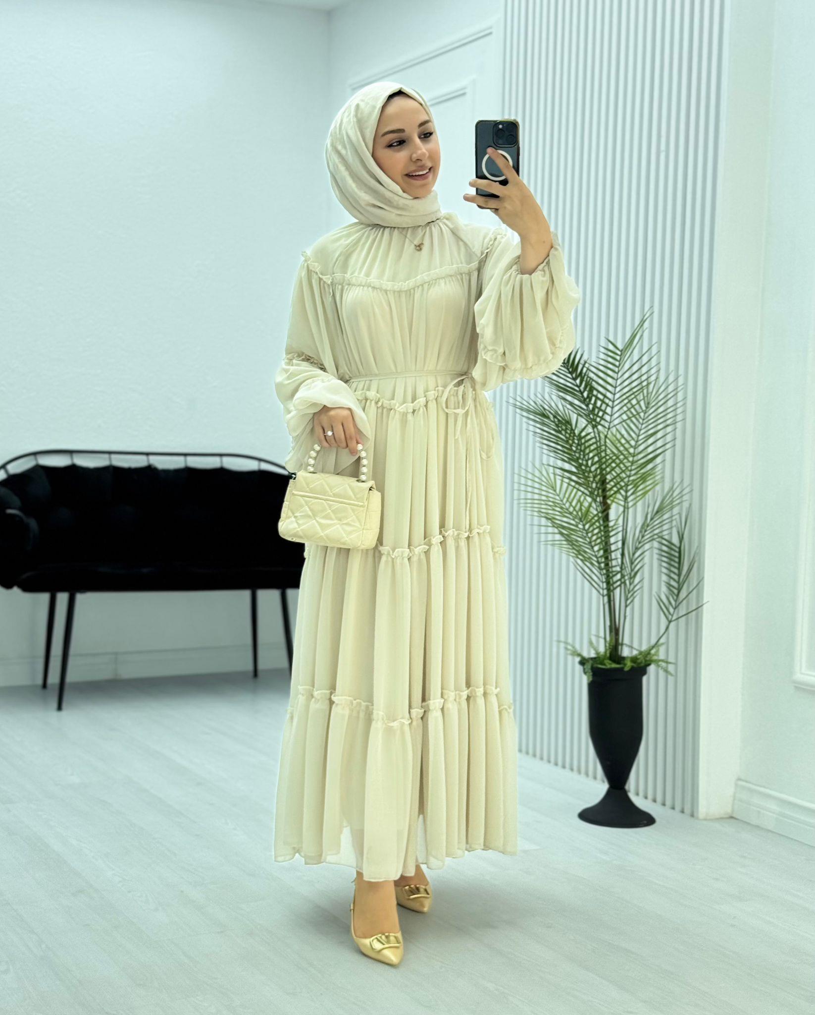 Premium şifon kumaşının hafif dokusu, rahat kalıbı ve şık tasarımı ile bu elbise gardırobunuzun en değerli parçalarından biri olacak. Uzun yıllar sevgiyle giyeceğiniz, zamansız bir seçim.