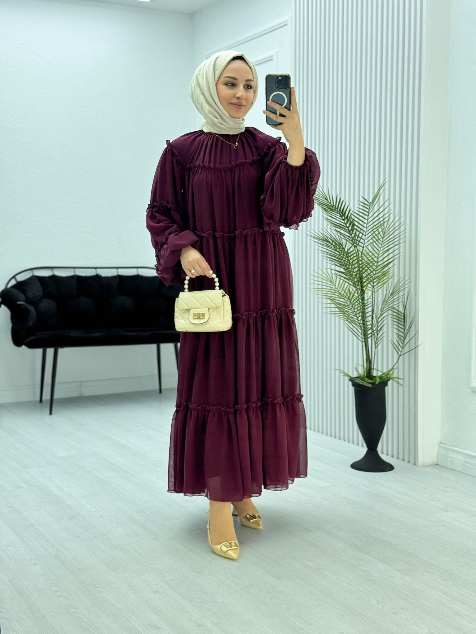 Premium şifon kumaşının hafif dokusu, rahat kalıbı ve şık tasarımı ile bu elbise gardırobunuzun en değerli parçalarından biri olacak. Uzun yıllar sevgiyle giyeceğiniz, zamansız bir seçim.
