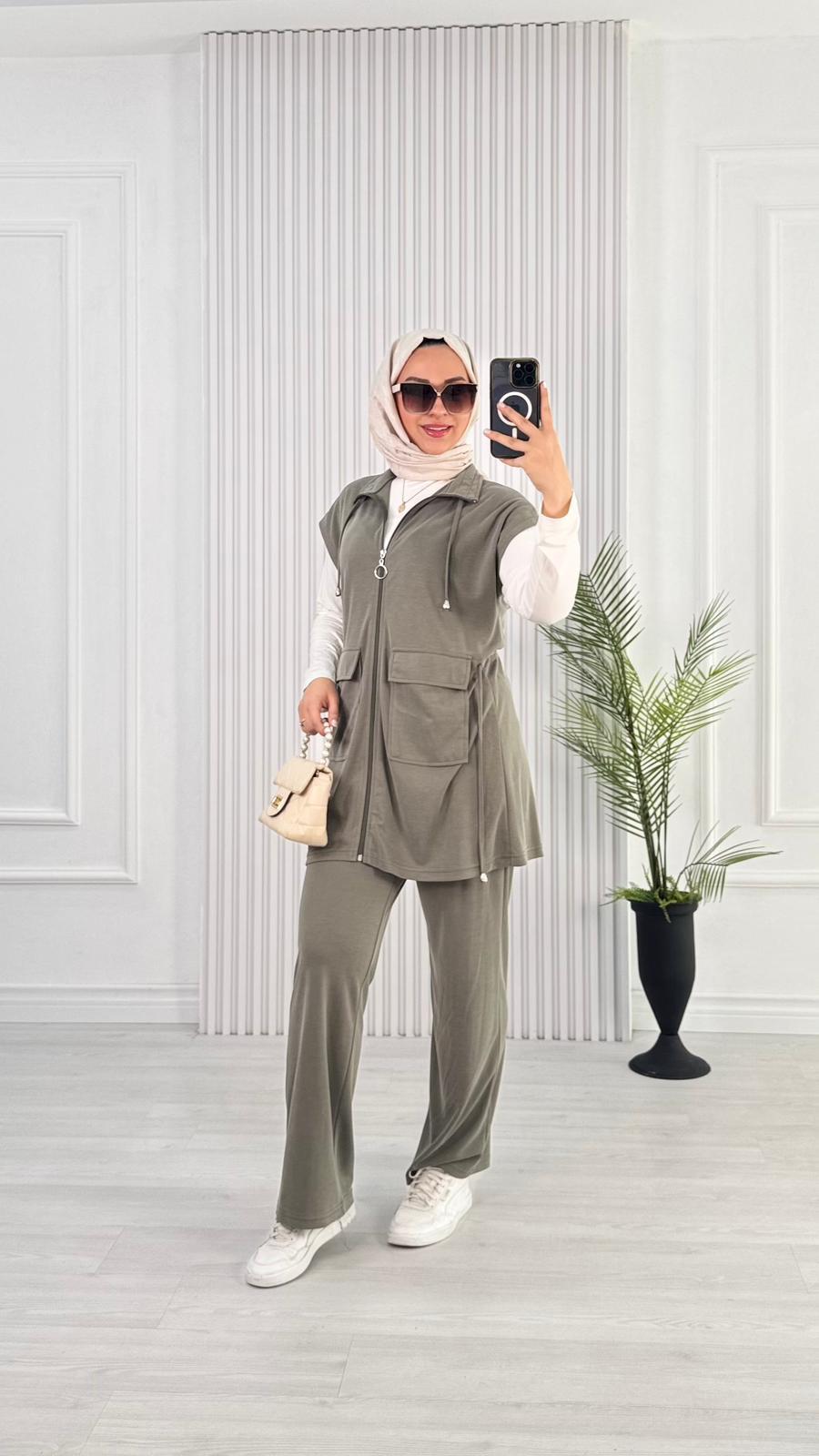 • Yelek: Fermuarlı tasarım, belden ayarlanabilir büzgülü kesim