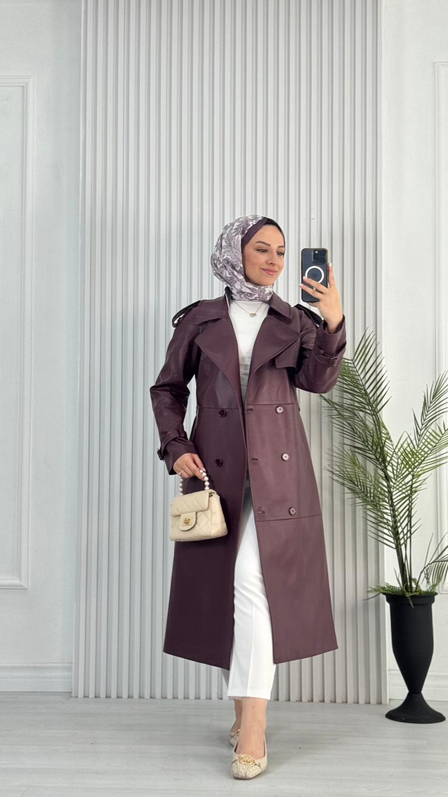 1299-Deri Trençkot-Mürdüm