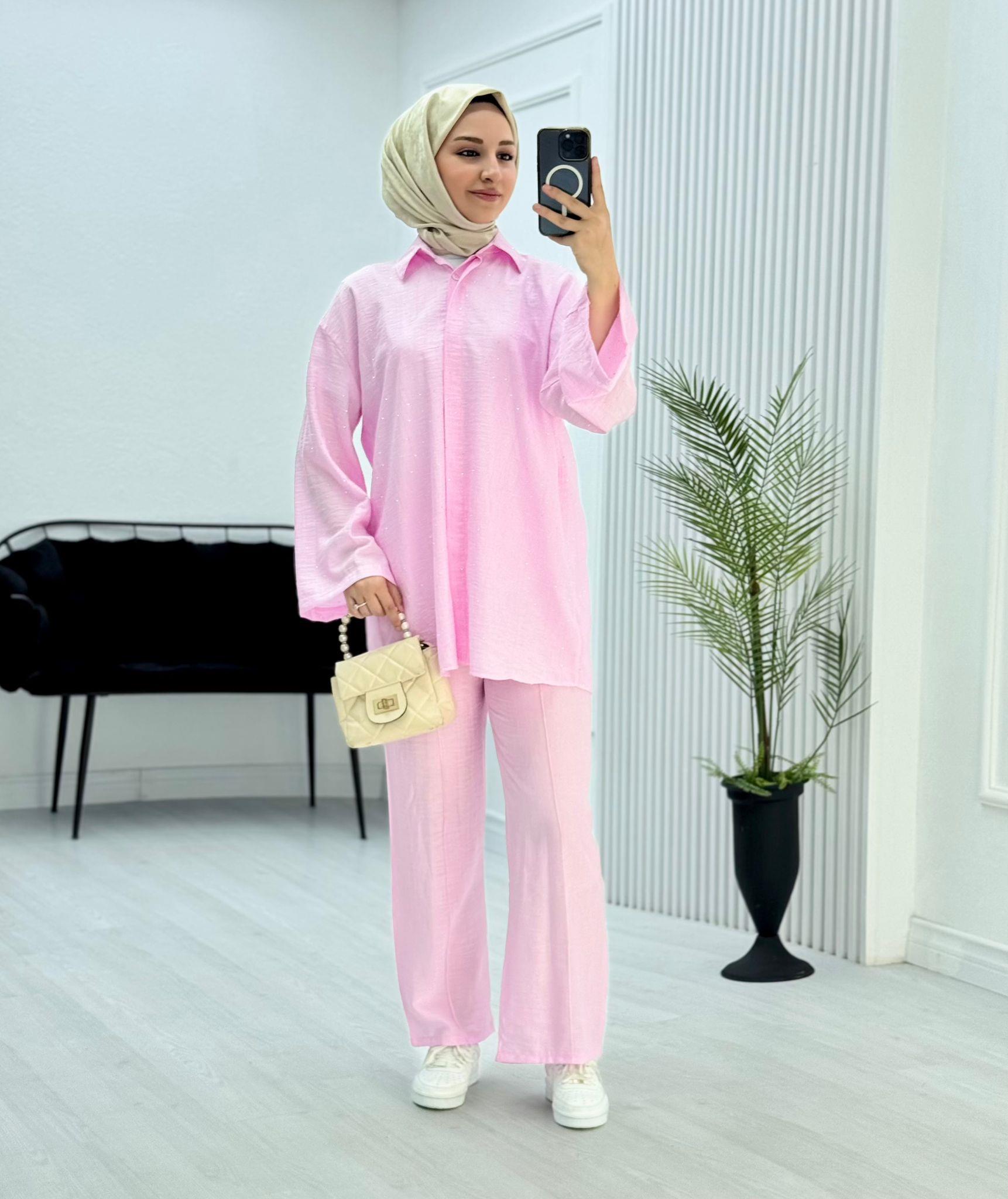 Günlük şıklığınızı tamamlayacak bu özel taşlı takım, zarif detayları ve rahat kesimiyle gardırobunuzun vazgeçilmezi olmaya aday.