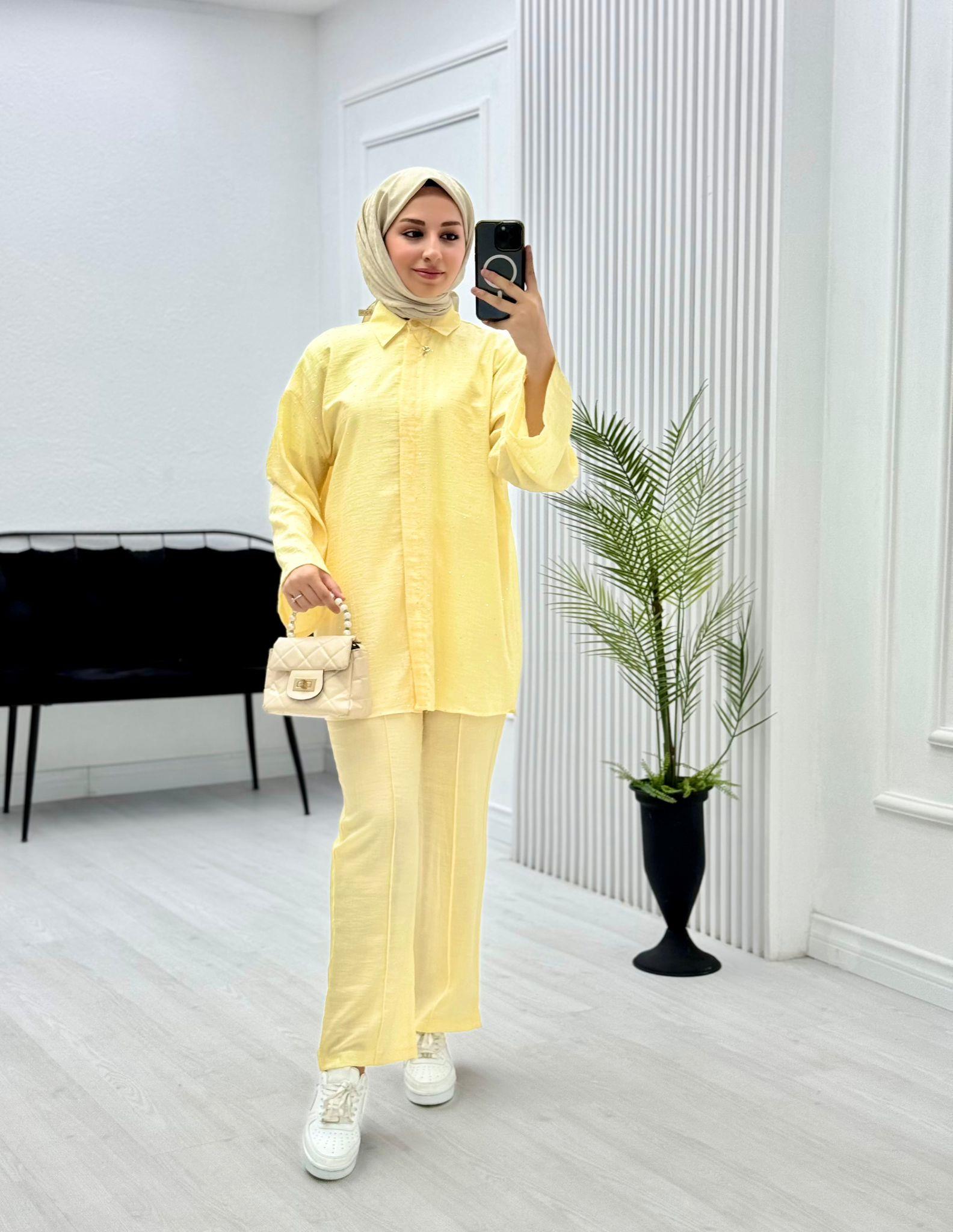 Günlük şıklığınızı tamamlayacak bu özel taşlı takım, zarif detayları ve rahat kesimiyle gardırobunuzun vazgeçilmezi olmaya aday.