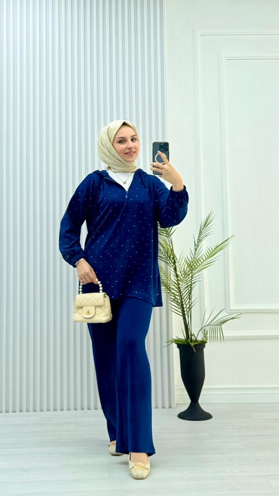2056-Taşlı Takım-Lacivert