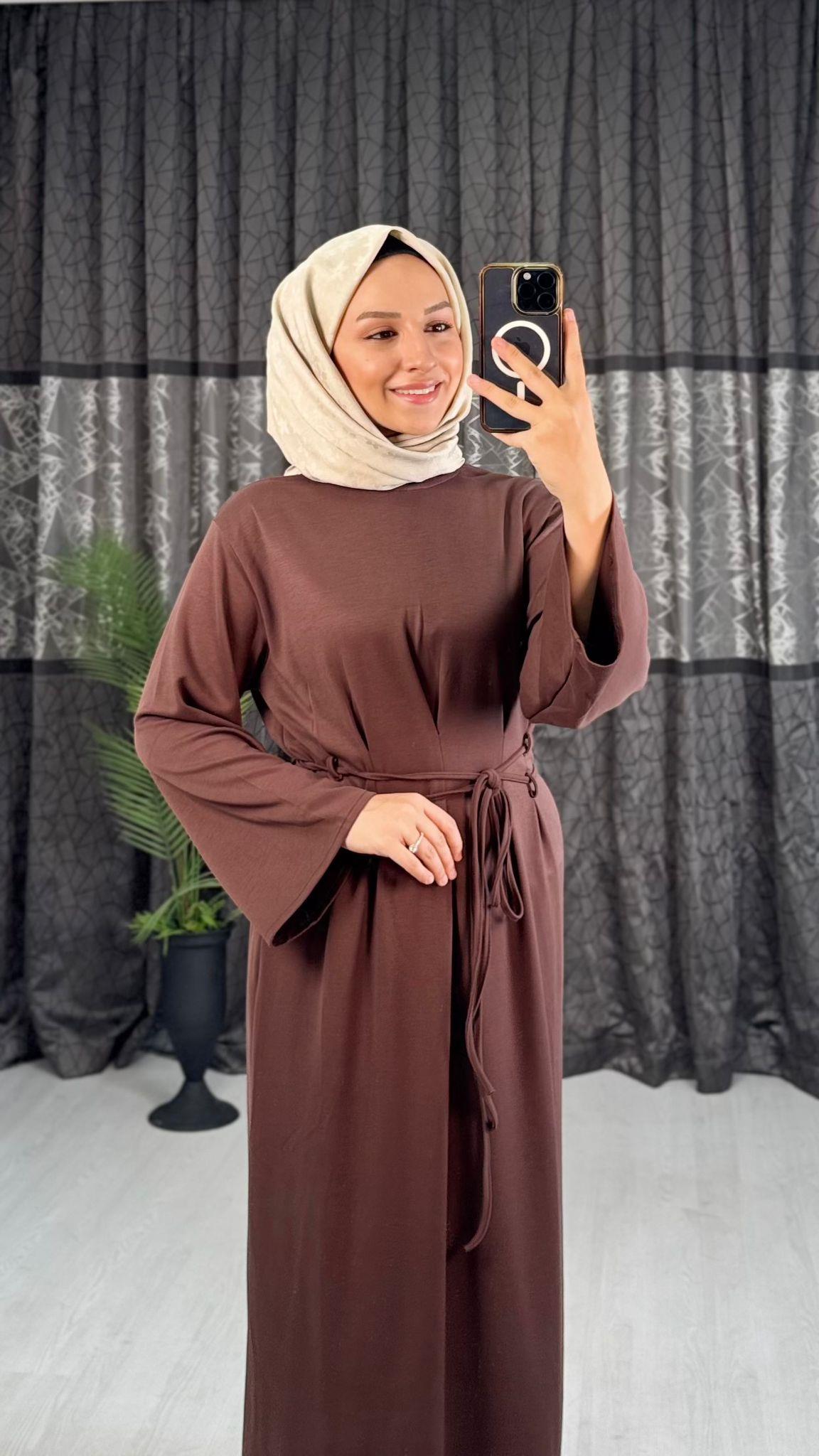 3240-Loop Elbise-Koyu Kahverengi