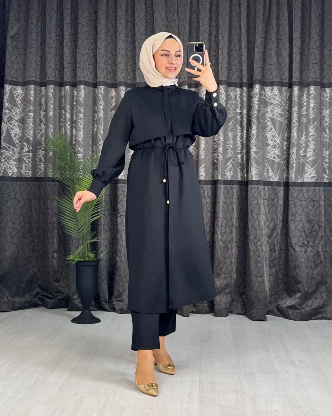Scuba kumaşın modern duruşu ve uzun tunik zarafeti ile hem özel hem günlük anlarınızda size çok yönlü şıklık sunan bu eşsiz takım.