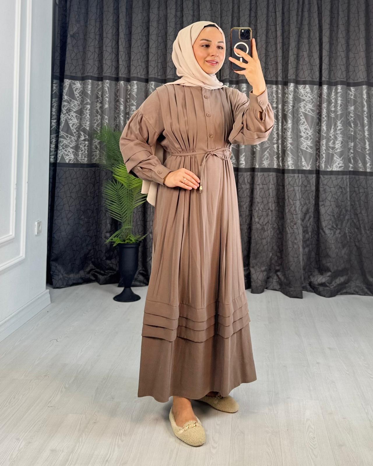Doğal Tencel kumaşın ipeksi zarafeti ve şık modern tasarım detayları ile hem gece hem gündüz şıklığınızı tamamlayan bu çok yönlü elbise.
