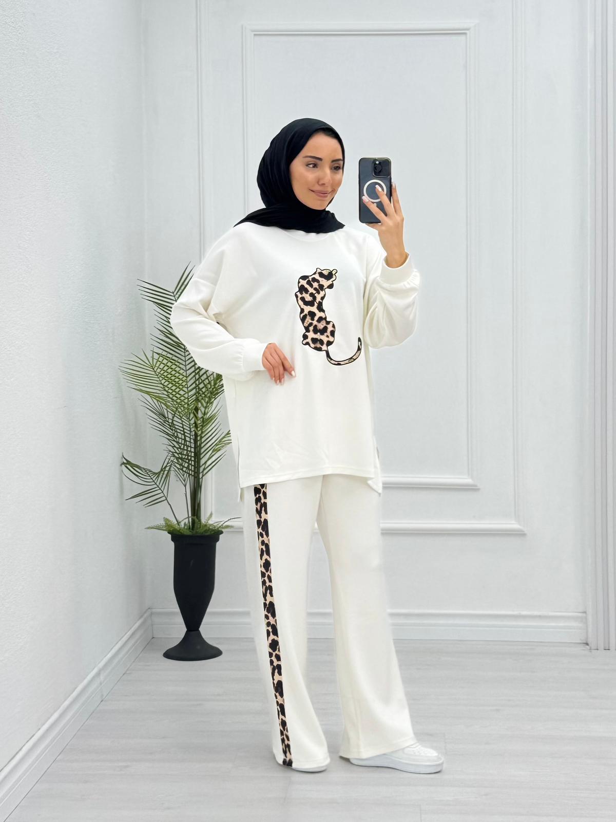 Günlük şıklığın en tarz hali! Leopar deseninin zamansız cazibesini rahat kesimiyle birleştiren bu takım, hem evde hem dışarıda rahatlıkla kullanabileceğiniz modern bir parça.