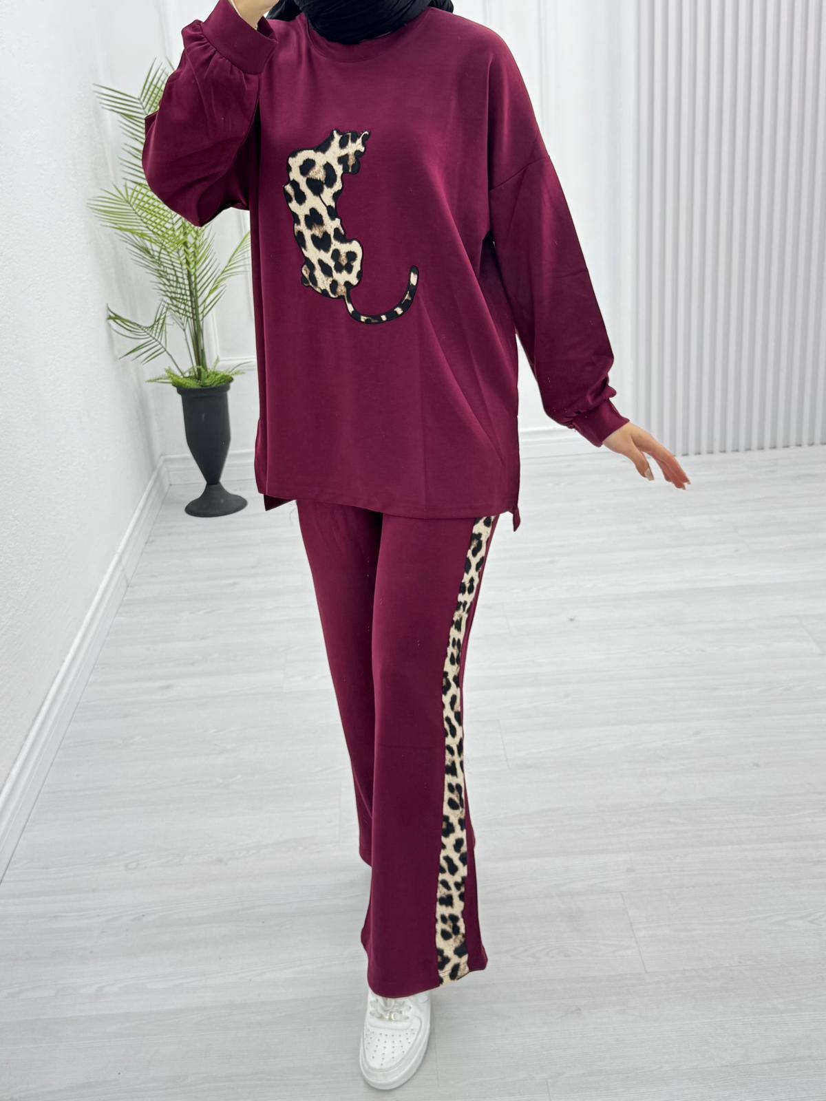 Günlük şıklığın en tarz hali! Leopar deseninin zamansız cazibesini rahat kesimiyle birleştiren bu takım, hem evde hem dışarıda rahatlıkla kullanabileceğiniz modern bir parça.