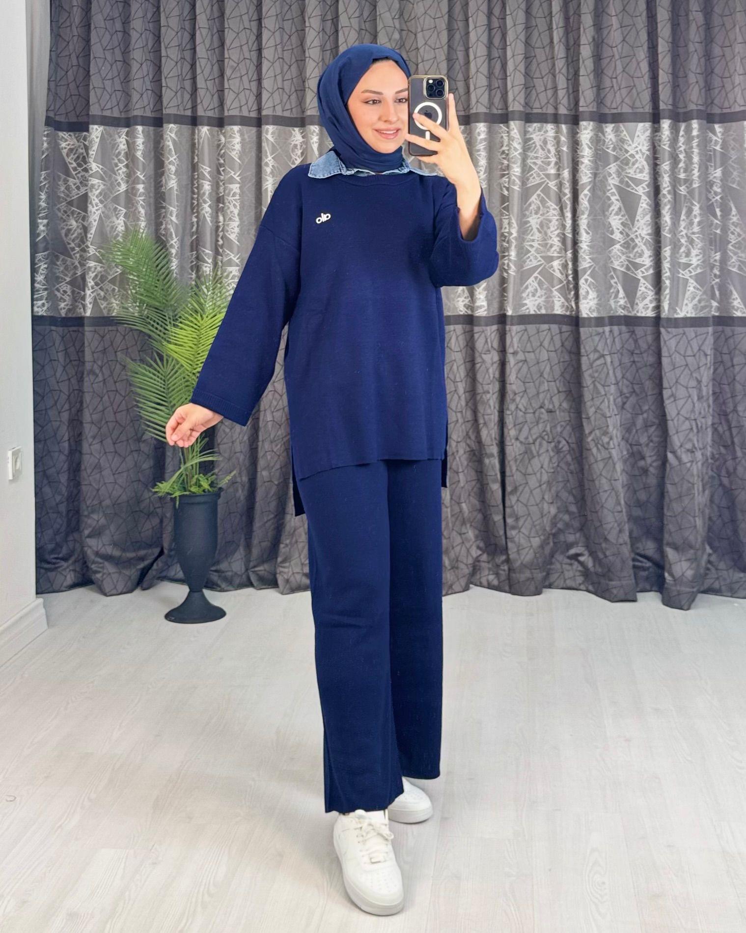 Premium kalite ve denim yaka detayının buluştuğu bu özel takım ile günlük şıklığınızı modern bir dokunuşla tamamlayın.