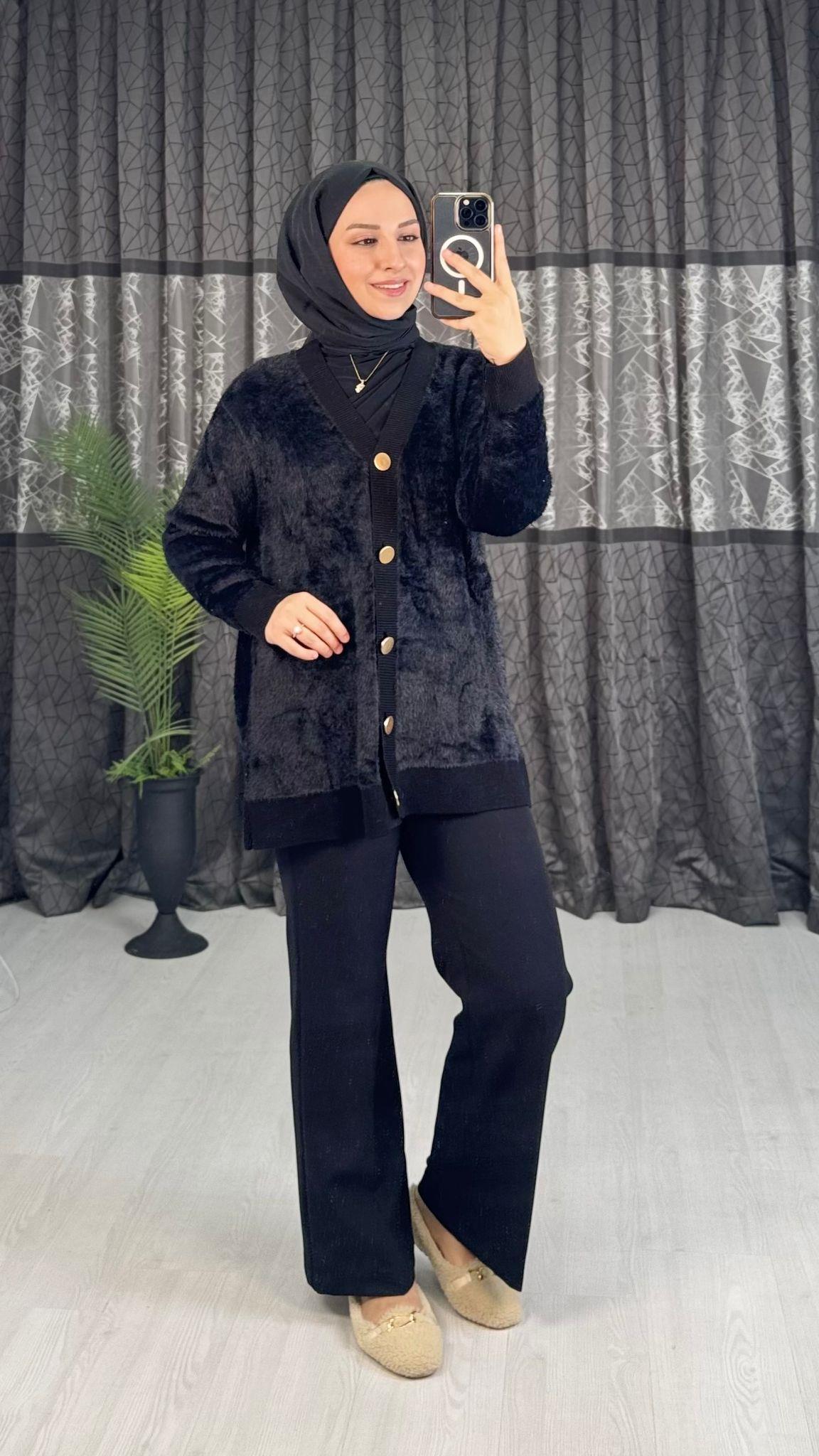 Premium angora kumaşından üretilen bu uzun kollu V yaka hırka, doğal angora lifinin eşsiz yumuşaklığı ile size lüks bir giyim deneyimi sunar. Klasik tasarımı ile sezonların vazgeçilmezi.