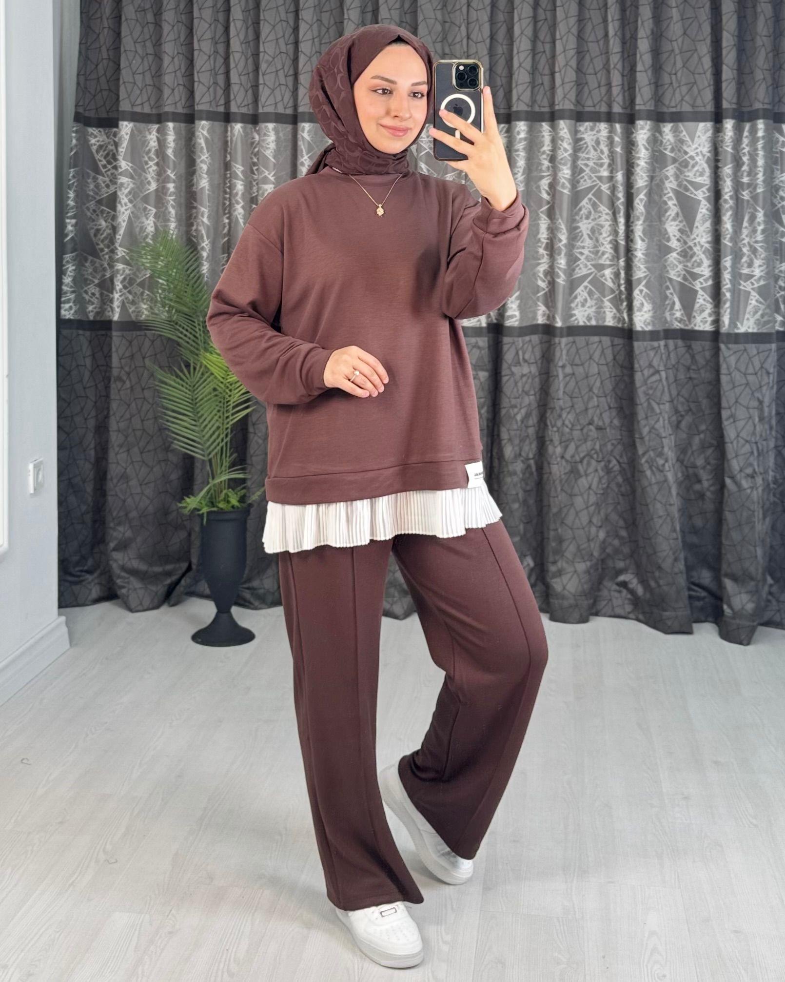 Pilili etek ucu detayı ile feminen zarafeti yansıtan bu özel takım, günlük şıklığınızın vazgeçilmez parçası olacak.