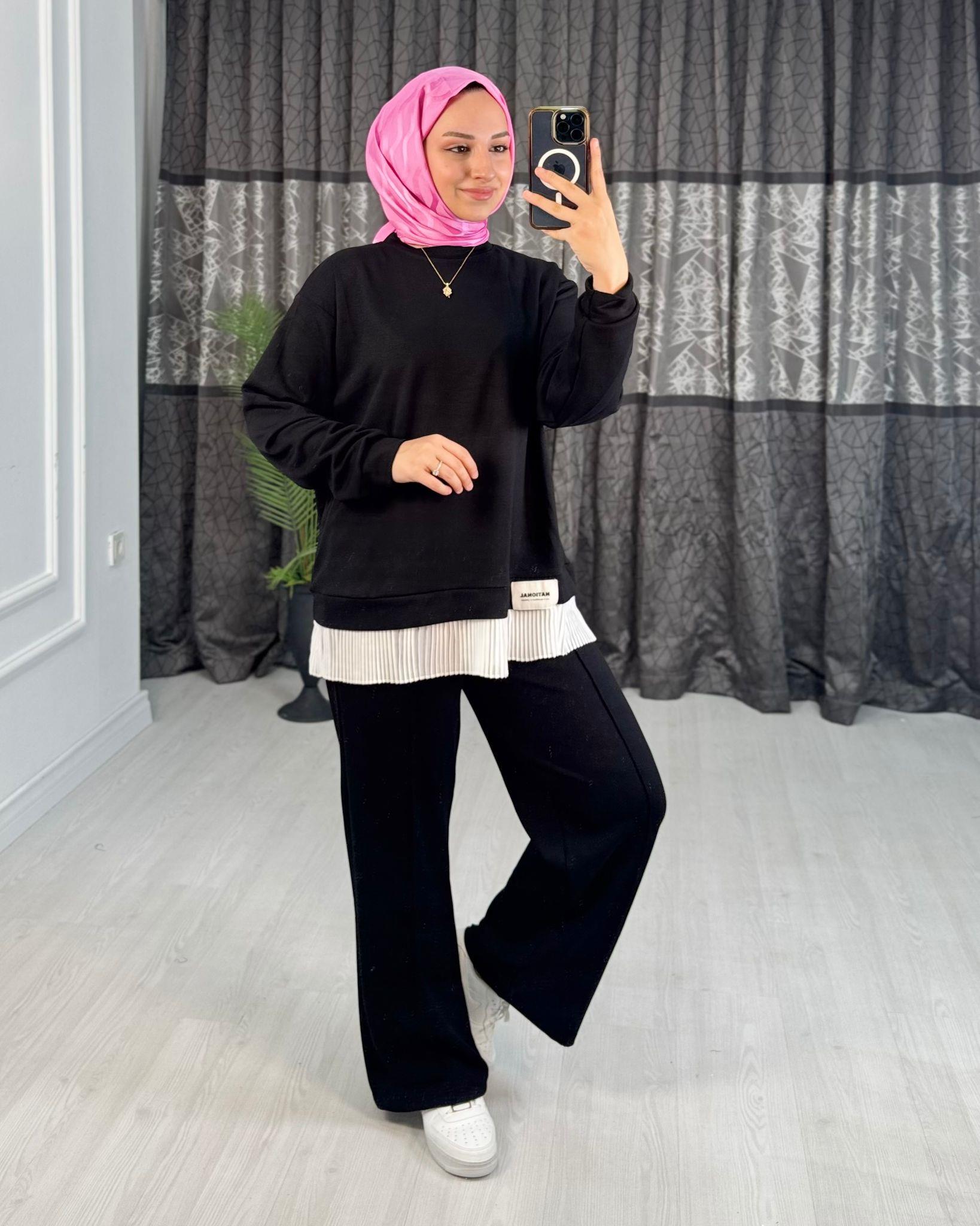 Pilili etek ucu detayı ile feminen zarafeti yansıtan bu özel takım, günlük şıklığınızın vazgeçilmez parçası olacak.