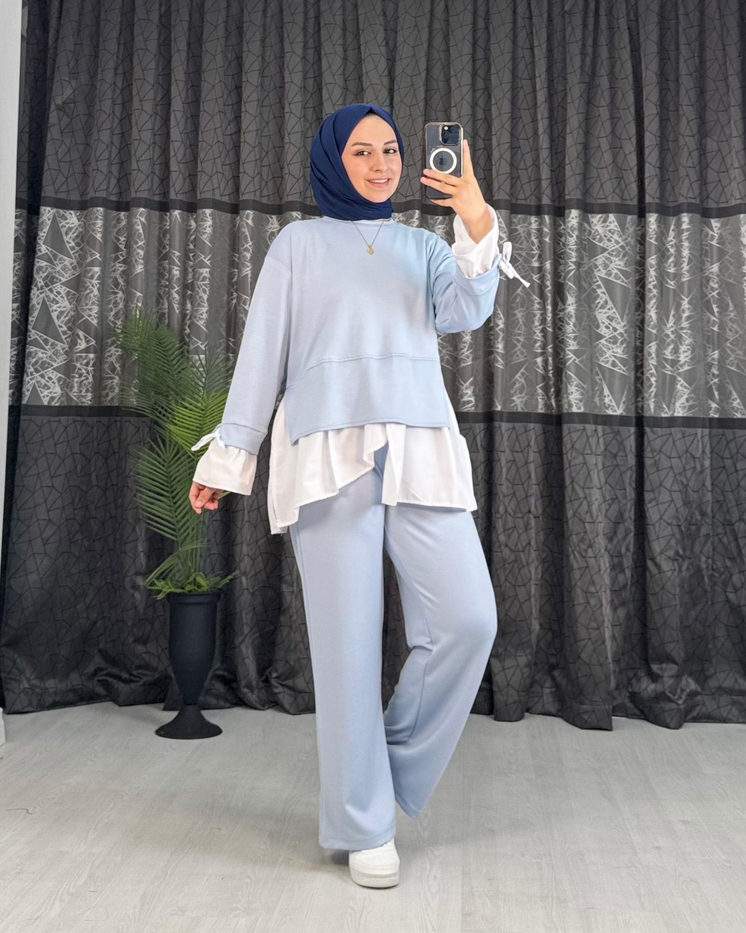 Kol ve etek ucu uyumlu kumaş detayları ile hem spor hem klasik tarzda kullanabileceğiniz bu çok yönlü takım, günlük şıklığınızın vazgeçilmez parçası.
