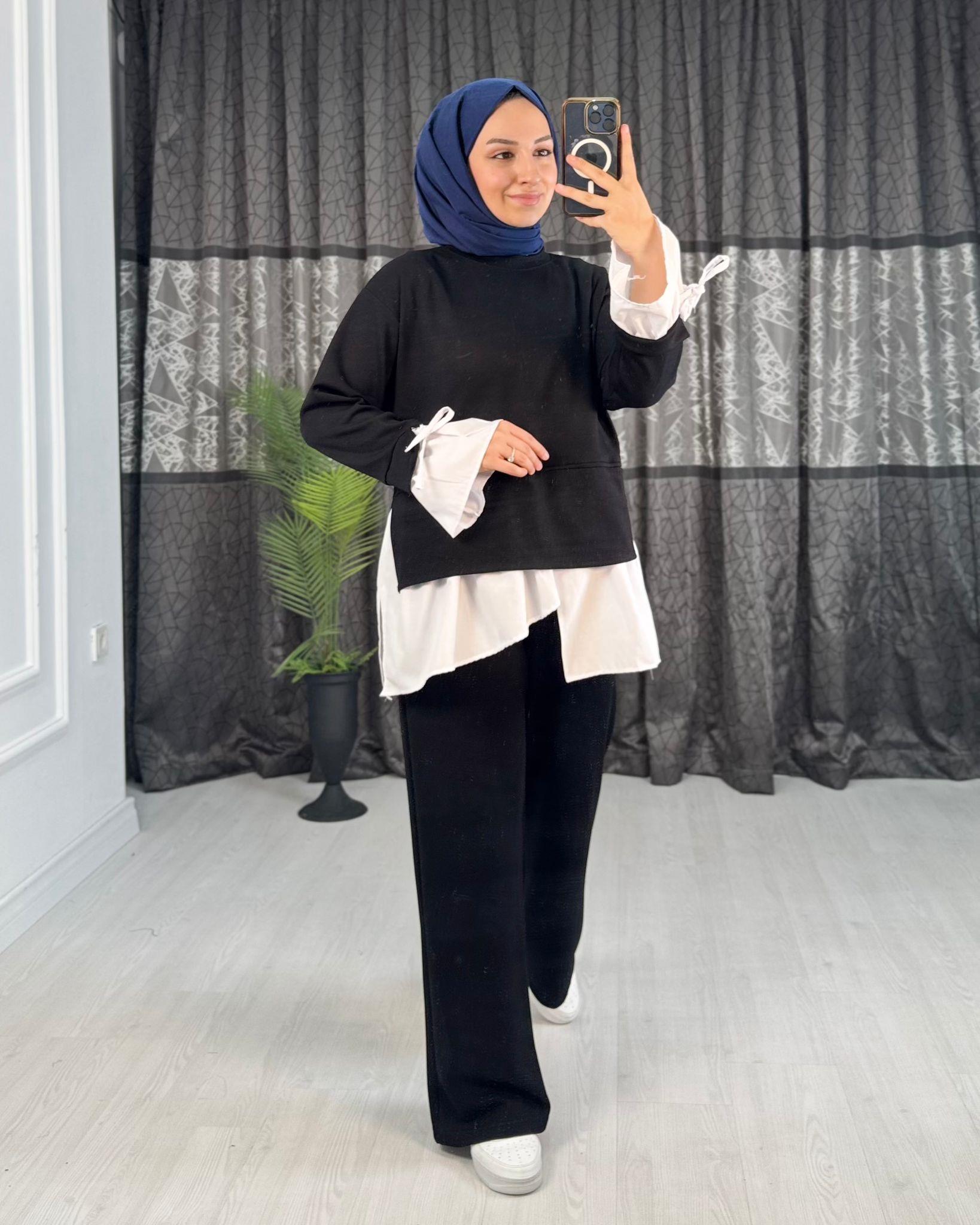 Kol ve etek ucu uyumlu kumaş detayları ile hem spor hem klasik tarzda kullanabileceğiniz bu çok yönlü takım, günlük şıklığınızın vazgeçilmez parçası.