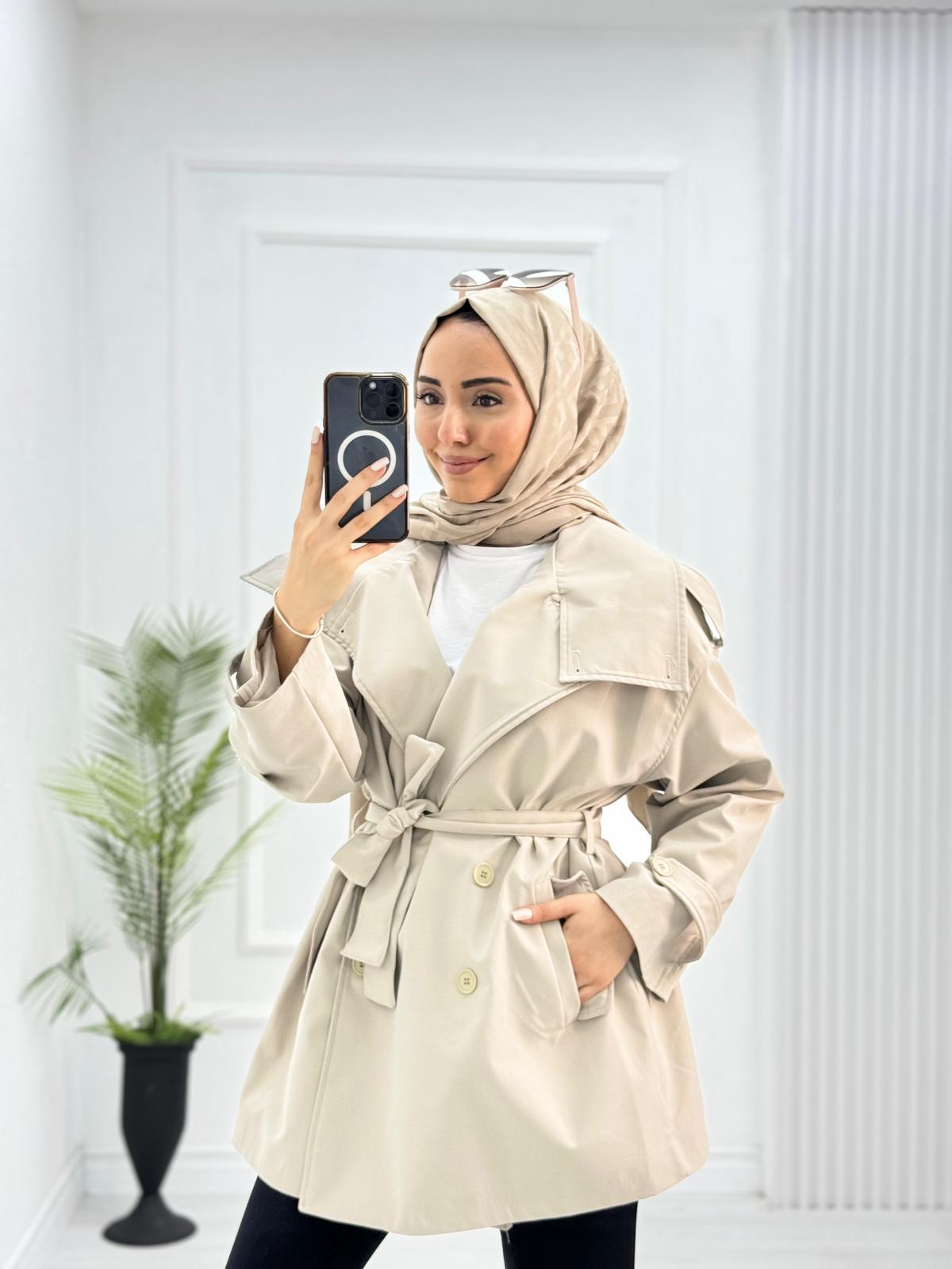 • Boy: 80 cm - ideal kısa trençkot boyu