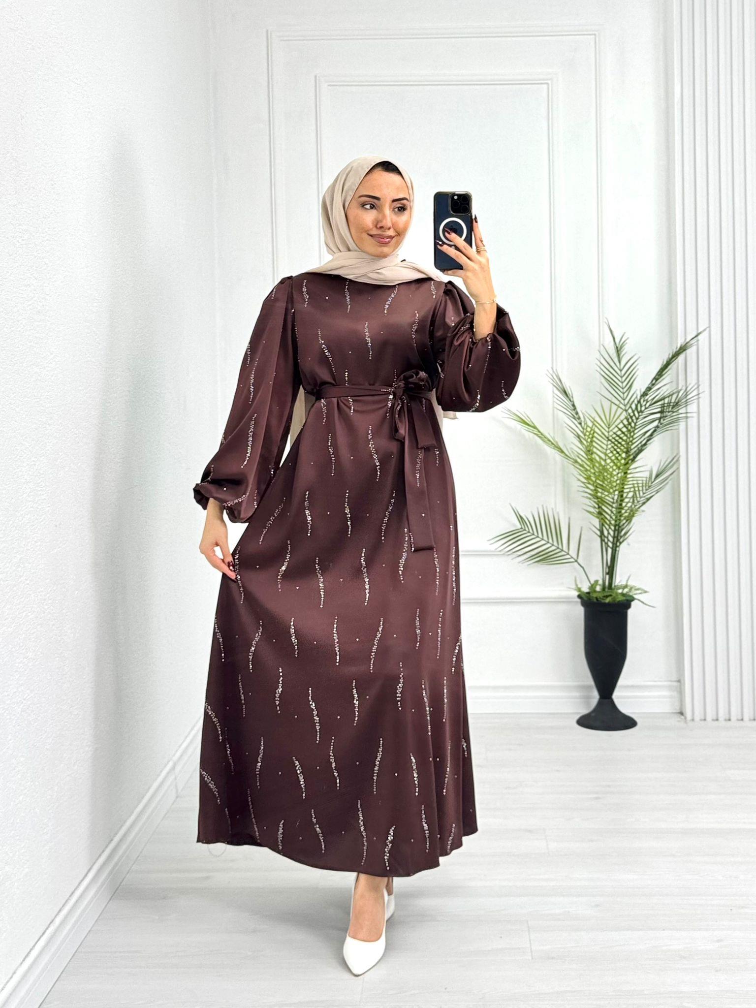 ✓ İthal saten kumaş ile premium kalite ✓ Taş detaylar ile göz alıcı ışıltı ✓ Seyyar kemer ile istediğiniz bel ölçüsü ✓ 135 cm boy ile zarif ve ince görünüm ✓ Normal kalıp - her vücut tipine uyumlu ✓ Lastikli kol uçları ile şık detay