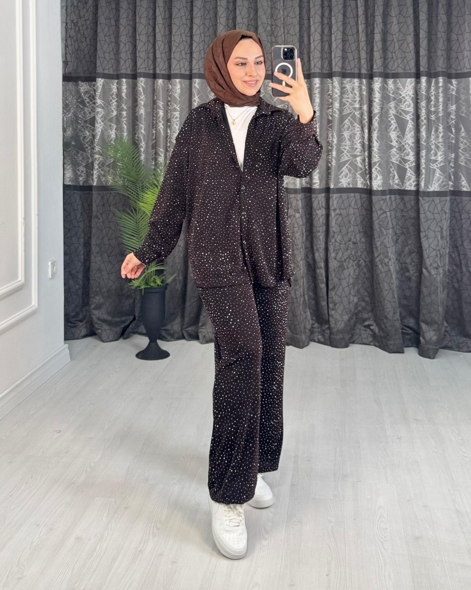 Düşmez dayanıklı taş detayları ve premium kalite ile özel anlarınızda size eşsiz zarafet katan bu lüks takım, gardırobunuzun en değerli parçası olacak.