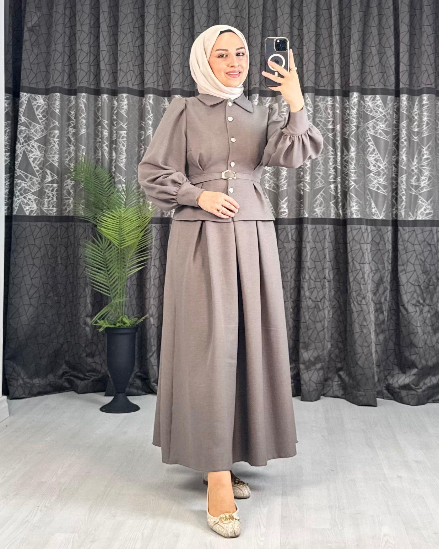 1. kalite krep kumaşın premium zarafeti ve seyyar kemer ile komplet gönderilen bu şık etekli takım, özel anlarınızda size unutulmaz bir şıklık katar.