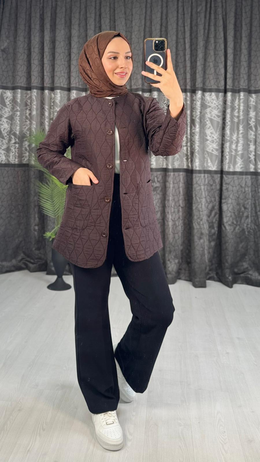 Wx1077-Capitone Ceket-Koyu Kahverengi