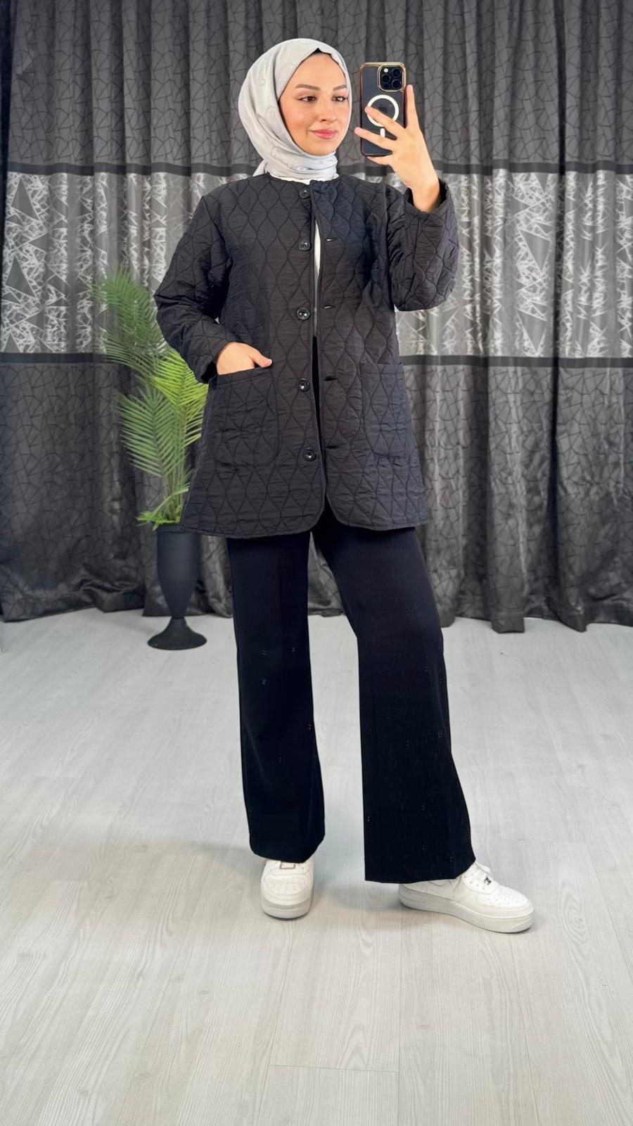 Özel capitone dokusu ile dikkat çeken bu ceket, modern kadının hem şık hem de konforlu giyim anlayışını karşılar. Boydan düğmeli tasarımı ve fonksiyonel detayları ile her kombininin vazgeçilmezi.